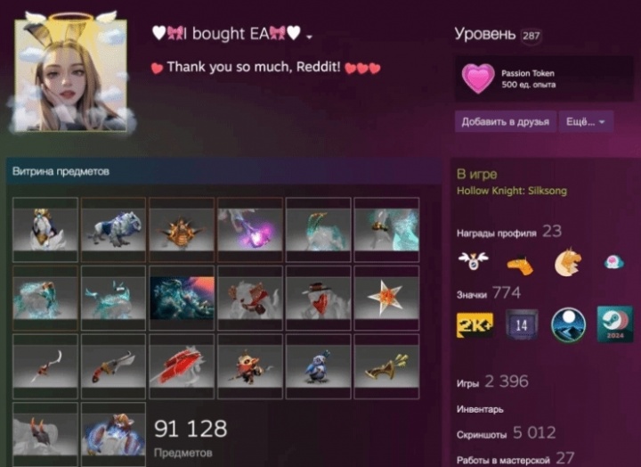 值得一提的是,Dexerto的报道显示,交易消息公布后,一位沙特王子在Steam平台上将自己的昵称更改为“I bought EA”(我买下了EA),这一举动引发了广泛关注。