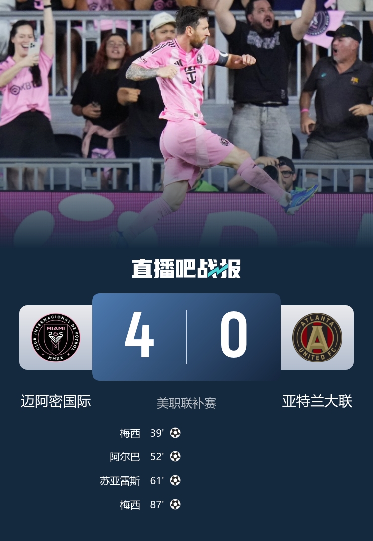 最终,经过90分钟激烈的比赛,迈阿密国际以4-0的比分战胜亚特兰大联,距离积分榜的首名仅有4分之差。这场胜利不仅提升了迈阿密在积分榜上的位置,也展现了球队的强大实力。