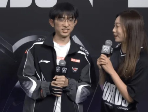 Q:祝贺你们赢下了这场比赛。当我们在采访间时,主持人注意到你跟对面的Ruler选手有个互动,能分享一下这个动作的背后意味吗?