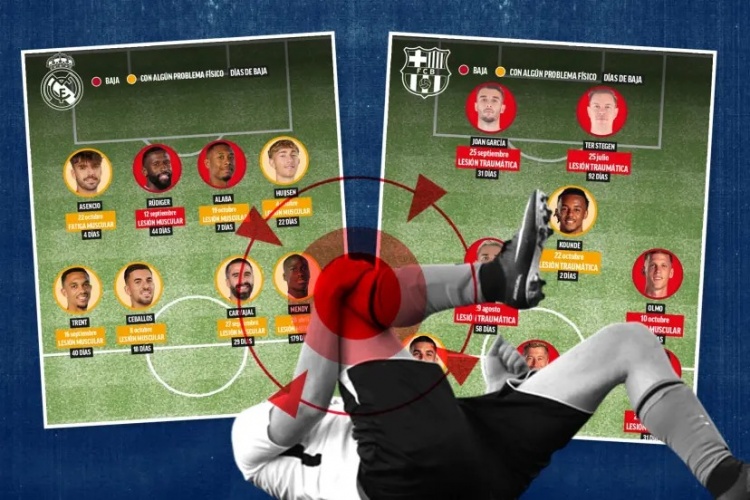 据《马卡报》最新的统计,令人堪忧的消息浮出水面,皇马与巴萨这两支西甲豪门目前竟然有多达十六名球员受到不同程度的伤病影响。皇马方面,吕迪格和阿拉巴这两名后防大将势必缺席,而巴萨则痛失特尔施特根、加维、莱万、奥尔莫、拉菲尼亚以及霍安-加西亚等六名重要球员,整整八人确定无法在即将到来的对决中上场。