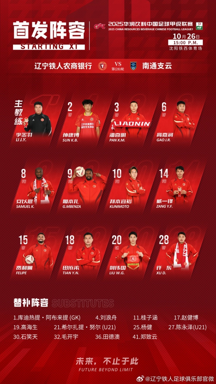 在10月26日的中甲联赛第28轮较量中,辽宁铁人和南通支云将在辽宁的主场狭路相逢。随着比赛的临近,双方都已经公布了各自的出场阵容,令人期待。
