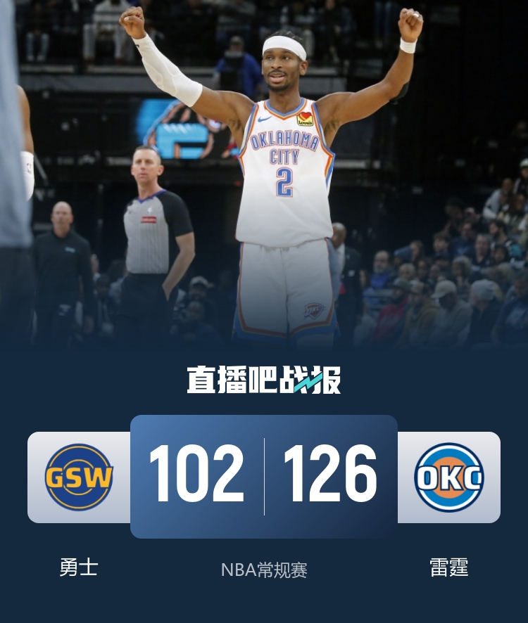 下半场开始后,勇士完全无法遏制雷霆的进攻。亚历山大在第三节表现抢眼,砍下13分6篮板3助攻,霍姆格伦也贡献了12分。这对组合的得分仅比勇士在这一节的总分少2分。雷霆在本节狂砍44分,确立了35分的巨大优势,基本锁定胜局。比赛进入最后一节,双方替补球员展开对抗,勇士一度打出13-0的小高潮,但仍然无法改变局势。最终,雷霆在主场轻松击败勇士,成功收获胜利。