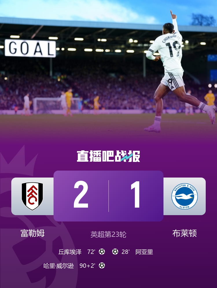 富勒姆险胜布莱顿 威尔逊补时任意球一击之下对手遭遇三轮不胜_英超直播