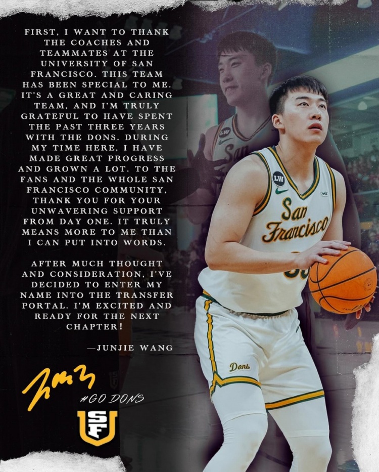 在这个令人心碎的时刻,旧金山大学的王俊杰显然打算开启一段新的旅程。他在社交媒体上发表了一篇感人的感谢信,仿佛在说:“谢谢你们,我将离开你们!”这位年轻的前锋表达了对教练和队友的感激之情,仿佛他们是他职业生涯的绝对支柱。可是,大家别忘了,这支球队可不仅仅是一个团体,更是王俊杰的一家人。