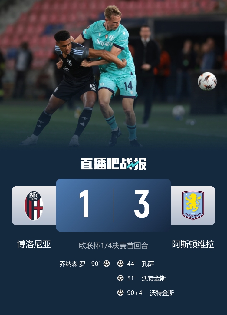 真是天方夜谭 维拉客场虐菜博洛尼亚 沃特金斯连进两球孔萨也来凑热闹_欧联杯直播